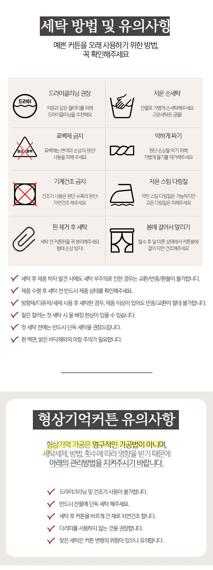 전문적인 디자이너가 실제로 커튼 설치가 이뤄질 공간을 확인한 뒤에 제품이나 색상도 직접 제안하여 주고 있으니 참고해주시길 바랄게요.그것은 주름의 형상을 기억해두었다 최초의 상태 원상태로 복원이 가능한 특징을 갖는 커튼이라 생각하여 주면 되겠는데요.고온 및 고압의 특수원단 가공기법으로 제작되어서 형상을 기억할 수 있는 거랍니다.