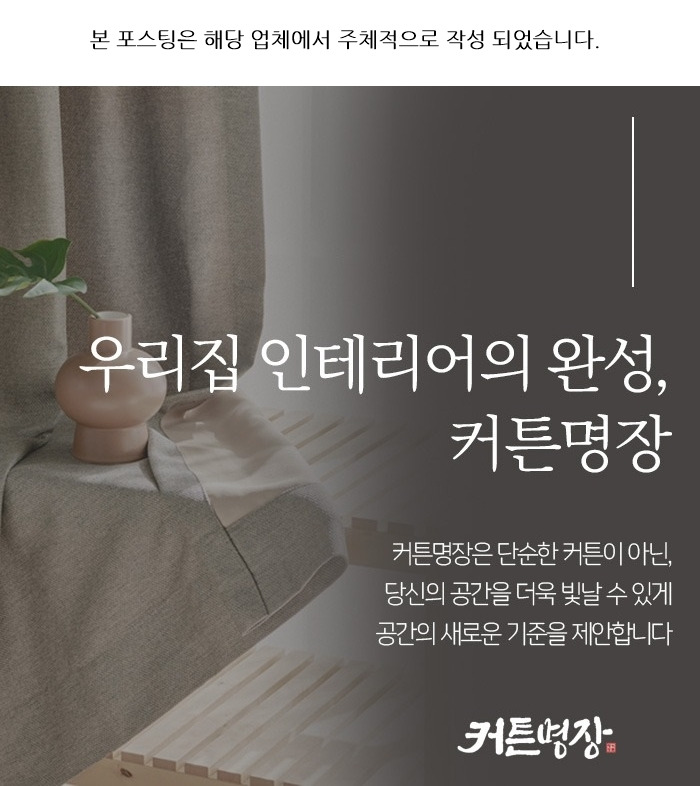 본인의 상상안에서 모든걸 의존해서 선택을 하였다가 정작 설치를 끝난 다음에는 기대랑은 또다른 모습에 그저 아쉬움을 표현하게 되는 것도 충분하게 벌어질수도 있어요.그렇듯 중요한 요소들을 놓친 걸 후회하게 되는 결정을 하는 일도 있답니다. 디자인만 계속 생각해오다 기능이 부족하다 느껴질수도 있겠고, 그와는 반대의 상황이 발생할수도 있습니다.그러므로 실측부터 시공까지 전문자가 함께할 커튼명장의 도움을 빌려 주실 것을 권유드릴 수가 있겠어요.